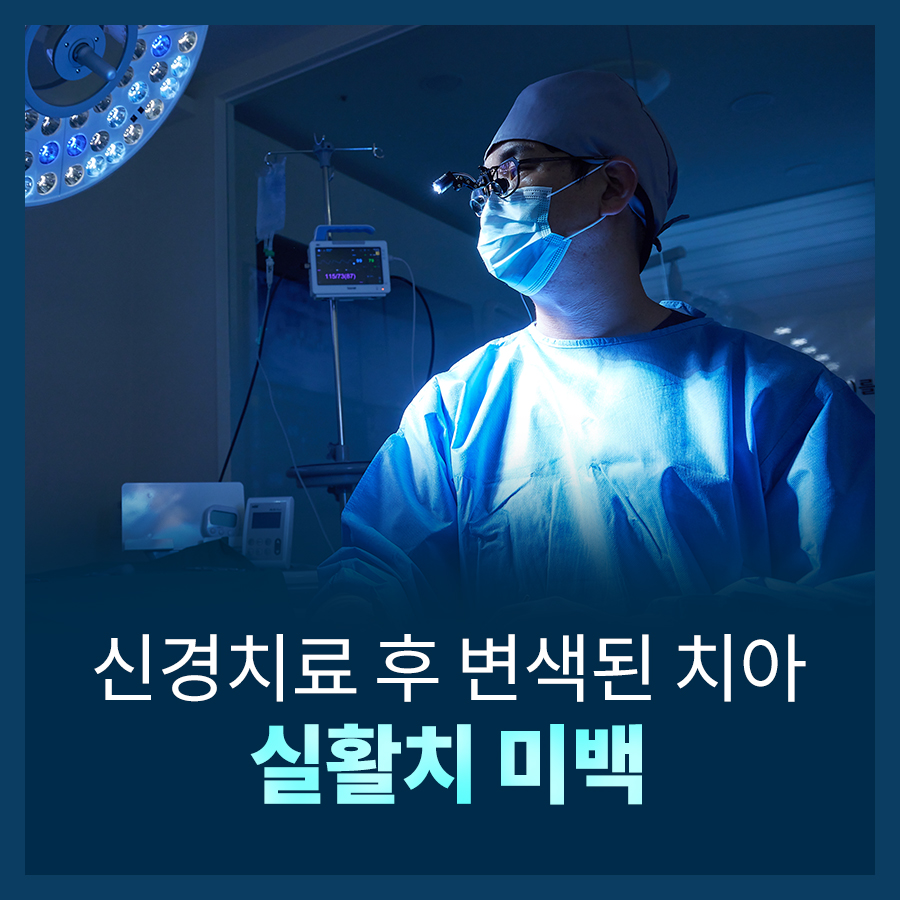 신경치료를 받으신 치아의 변색이 걱정되시거나, 치아 색깔 변화로 고민이 있으시다면